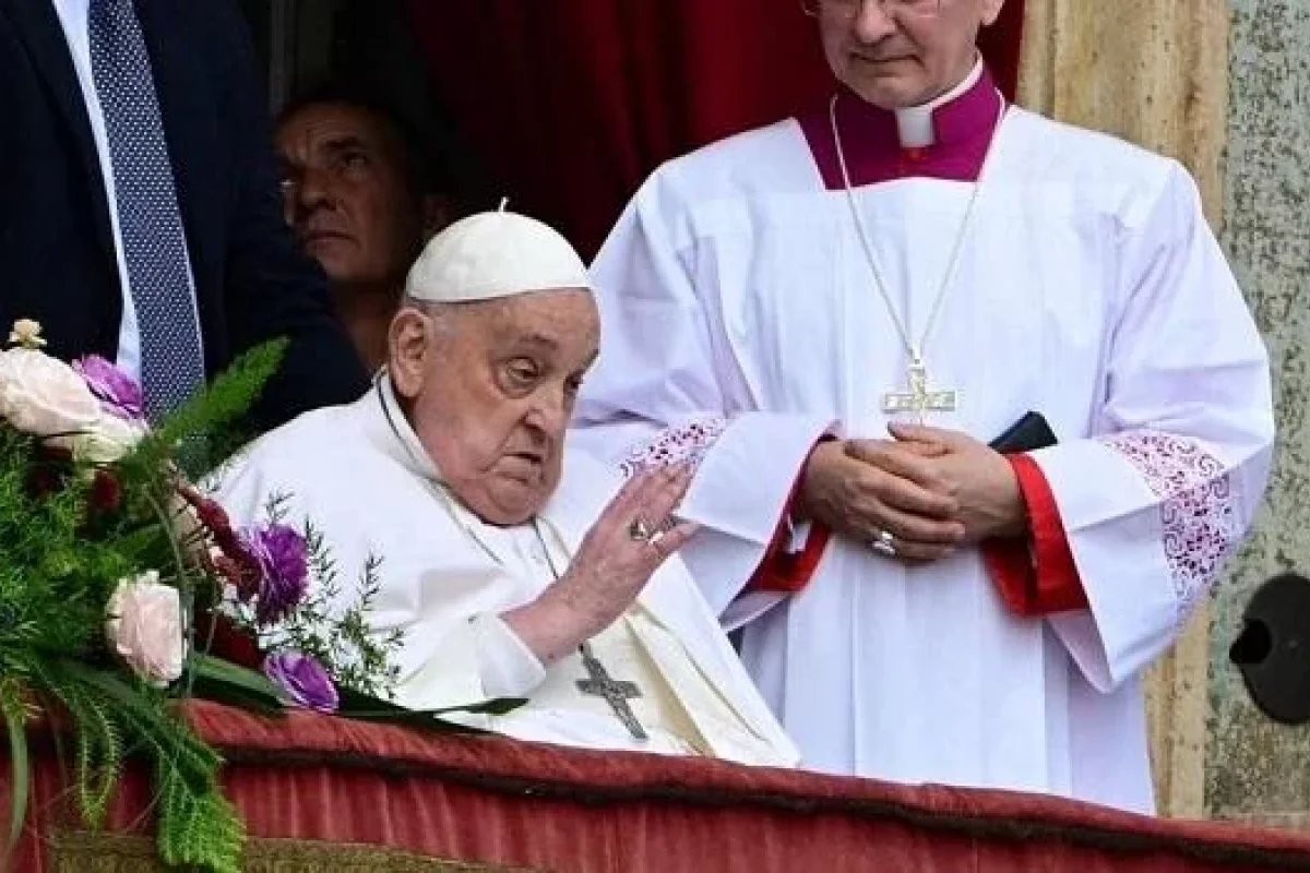 Müqəddəs Pyotr kilsəsinin eyvanında mesajının oxunması zamanı 88 yaşlı papa özü iştirak edib və möminləri Pasxa bayramı münasibətilə təbrik edib.