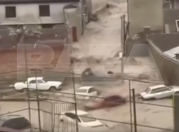 Dərbənd şəhərində yerli çaylar məcrasından çıxıb və nəticədə yolları su basıb. Dağ yamaclarında güclü su axınları avtomobilləri sürüyərək aşırıb.