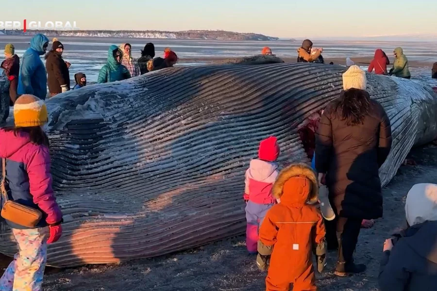 ABŞ-nin Alyaska ştatının Ankoric şəhərindəki Kuk İnlet sahilində nəhəng Fin balinası sahilə çıxıb.