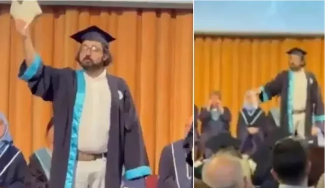 Boğaziçi Universitetində keçirilən buraxılış mərasimində Sosiologiya fakültəsini "Yüksək fərqlənmə diplomu" ilə bitirən Doruk Dörücü, diplomunu mərasim zamanı cırıb.