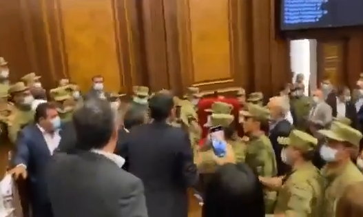 Bundan sonra parlamentdə bir qrup deputatla təhlükəsizlik xidməti arasında dava düşüb. Bəzi millət vəkilləri "Nikol xain" deyə qışqırıblar.