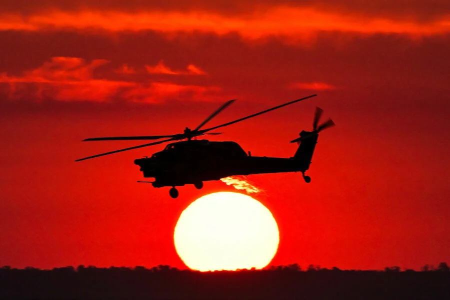 Rusiyanın Voronej vilayətində "Mi-28" hərbi helikopteri qəzaya uğrayıb və sərt enişdən sonra alovlanıb.