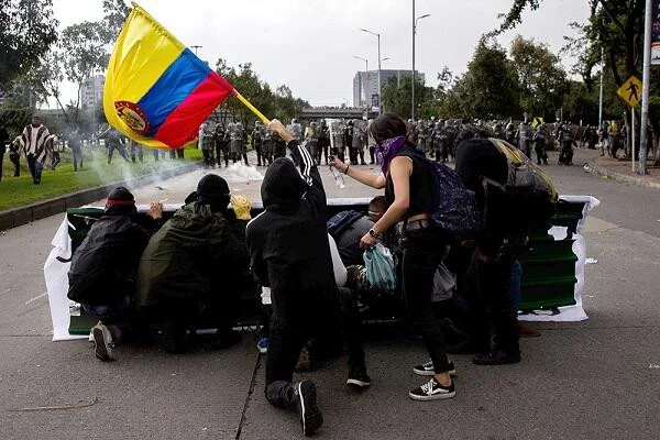 Kolumbiyada etiraz aksiyasında iştirak edən fəallar ABŞ-nin Boqota şəhərindəki səfirliyinə oxlarla, pirotextnik materiallarla və partlayıcı vasitələrlə hücum edib.