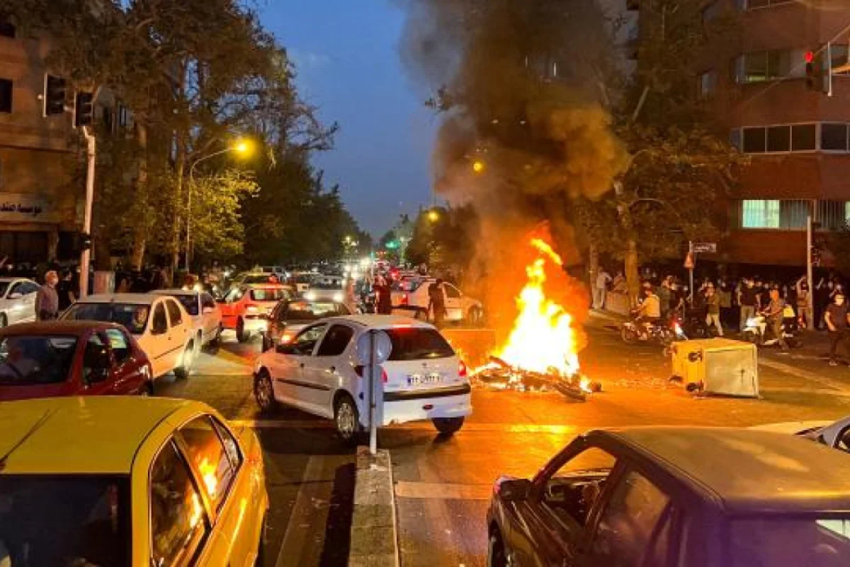 İranın müxtəlif vilayətlərində etirazçılar yolda atəş yandırıb, rejim əleyhinə şüarlar səsləndiriblər.
