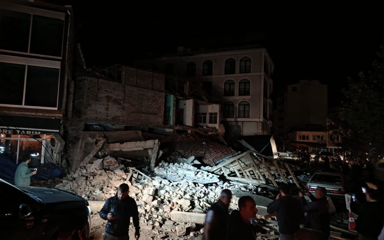 Türkiyənin Balıkesir vilayətində qeydə alınan 6,1 bal gücündə zəlzələdə bir yaşayış binası uçub.