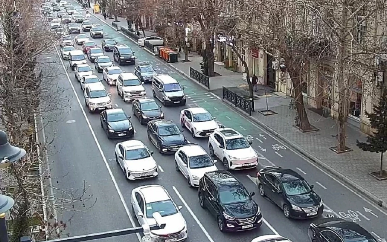 Bakının bir sıra yollarında nəqliyyatın sıxlığı müşahidə olunur.