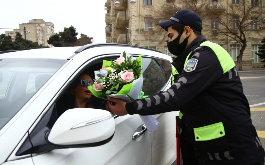 Bakı Şəhər Dövlət Yol Polis İdarəsinin (BŞDYPİ) əməkdaşları xanım sürücüləri və piyada xanımları təbrik edib.