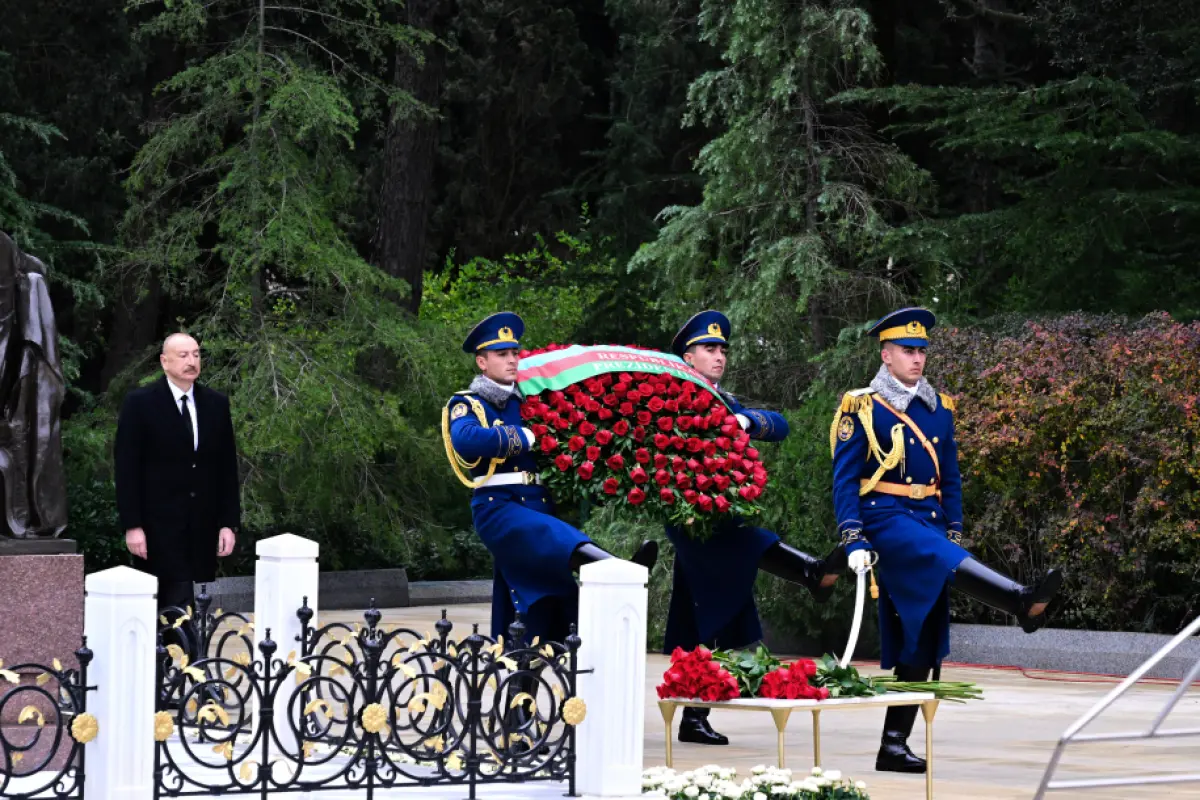 Prezident İlham Əliyev Ulu Öndərin məzarı önünə əklil qoyub.