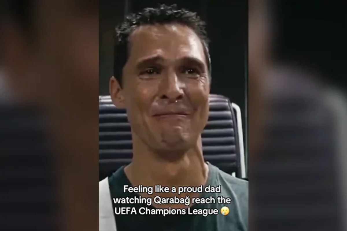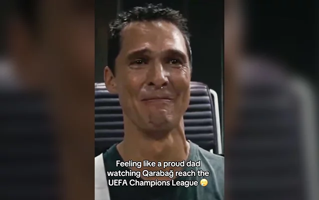 Paylaşımda məşhur filmdən ağlama səhnəsi paylaşılıb və bu sözlər yazılıb: “Qarabağ”ın UEFA Çempionlar Liqasına yüksəlməsini izləyən qürurlu ata kimi hiss edirəm”.