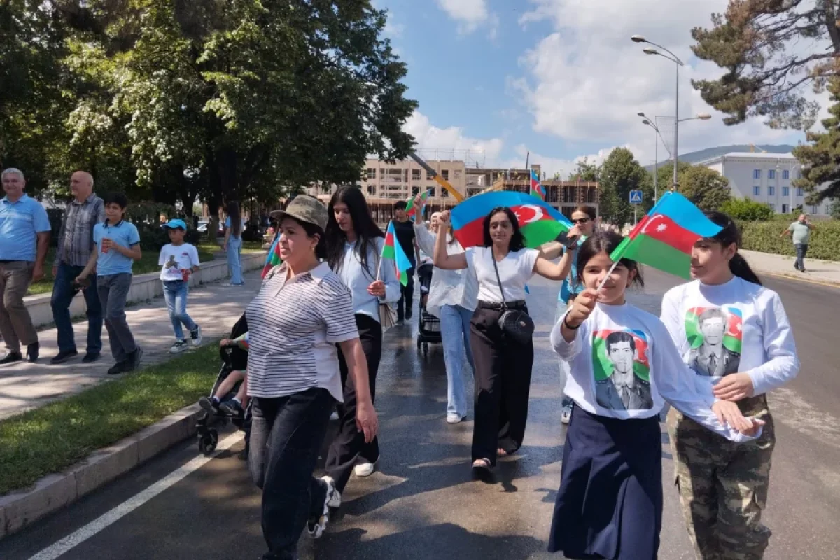 Hərbi vətənpərvərlik mahnıları, qələbə marşının sədaları yerli sakinlərinə və şəhərin qonaqlarına xoş ovqat bəxş edib və böyük maraqla dinlənilib.Azad Xankəndi torpağında yürüş edən hərbi qulluqçular, vətəndaşlar tərəfindən alqışlarla qarşılanıb.Bayram yürüşü şəhərin Zəfər meydanında başa çatdı.