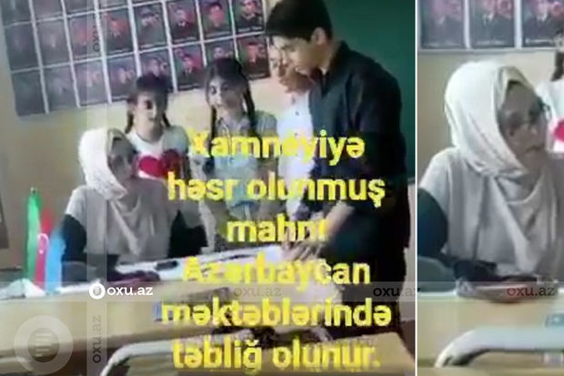 Azərbaycanda fəaliyyət göstərən məktəblərinin birində şagirdlərə İranın ali dini lideri Xameneiyə həsr olunmuş mahnı ifa etdirilib.