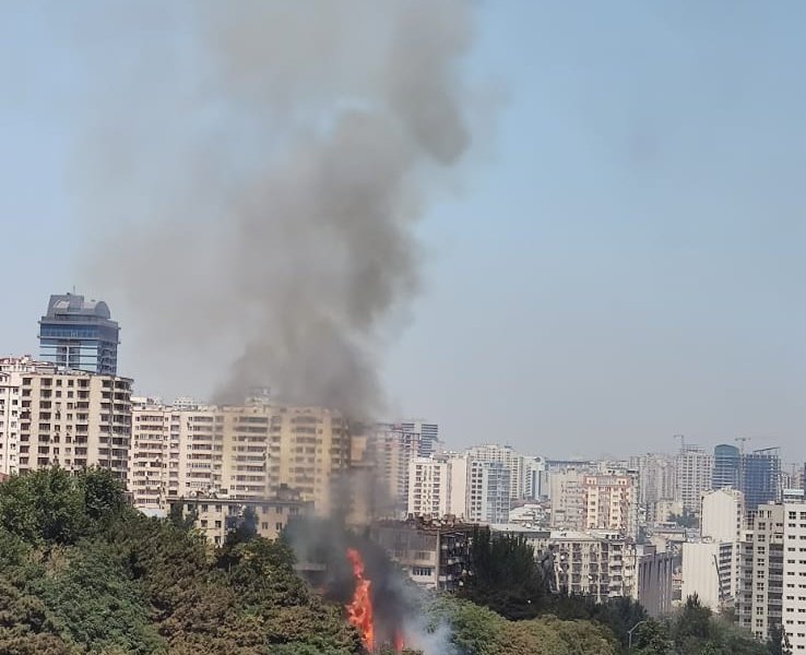 Bakıda ağaclıq ərazidə güclü yanğın başlayıb.