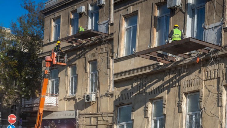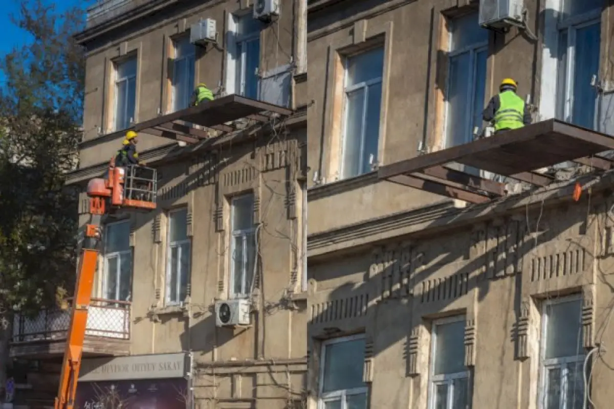 Bakının mərkəzində - Şəmsi Bədəlbəyli küçəsində tarixi arxitektur binaya əlavə eyvan quraşdırılır.