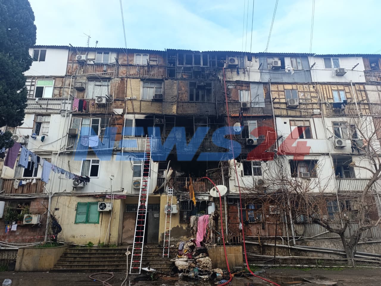 Binəqədidə yataqxanada yanğın: 13 məcburi köçkün ailəsinə ziyan dəydi - Video