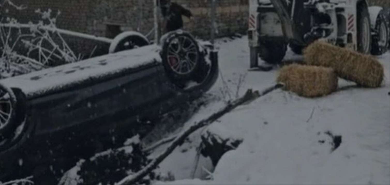 Qəbələdə buzlu yolda sürüşən avtomobil dərəyə aşdı - Video