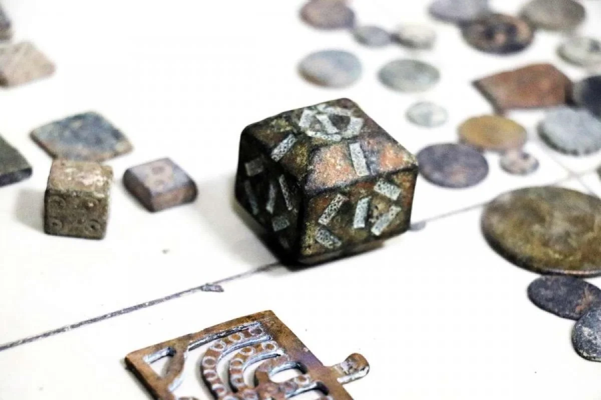 Həmin bağlamalara baxış nəticəsində isə üzərində müxtəlif simvol və heroqlif olan 4 ədəd qızıl sikkə, üzərində müxtəlif simvol və heroqlif olan 20 ədəd gümüş sikkə, bürüncdən hazırlanan - üzərində şamdan simvolu olan 18 ədəd kulon, eləcə də xaça bənzər 22 ədəd kulon, üzərində simvol olan kubşəkilli 5 ədəd predmet, üzərində simvol olan 4 ədəd çoxbucaqlı predmet, üzərində simvol olan 1 ədəd səkkizbucaqlı predmet, üzərində müxtəlif simvollar olan 280 ədəd dördbucaqlı predmet və nəhayət, üzərində müxtəlif simvol və heroqlif olan 10.800 ədəd dairəvi şəkilli mis aşkara çıxarılıb.