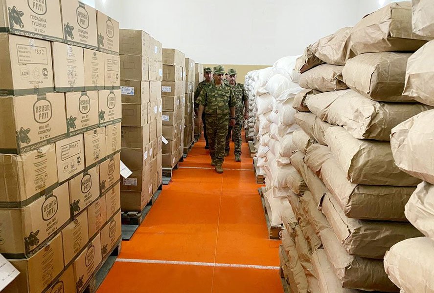 Bundan başqa müdafiə nazirinə işğaldan azad edilmiş ərazilərimizdə ərzaq və əşya əmlakı anbarlarının tikintisinin davam etdirilməsi barədə məruzə edilib.