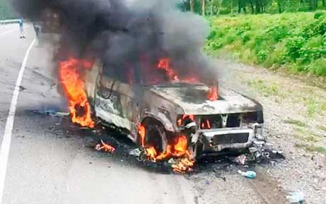 Zaqatalada minik avtomobili yandı