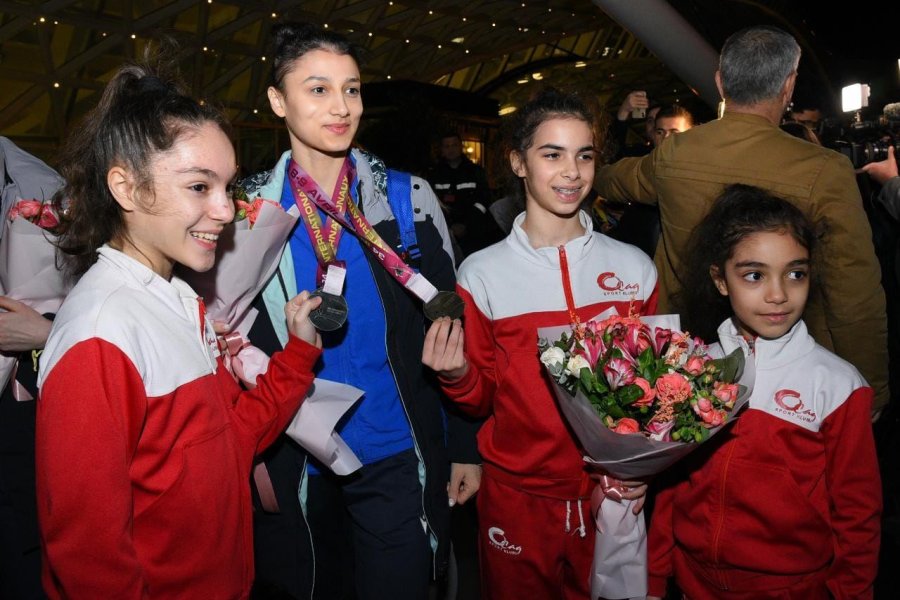 News24.az xəbər verir ki, Heydər Əliyev Beynəlxalq Aeroportunda gimnastlarımızı Azərbaycan Gimnastika Federasiyasının nümayəndələri, həmkarları, idman ictimaiyyətinin nümayəndələri, həmçinin idmançıların qohumları və dostları qarşılayıblar.