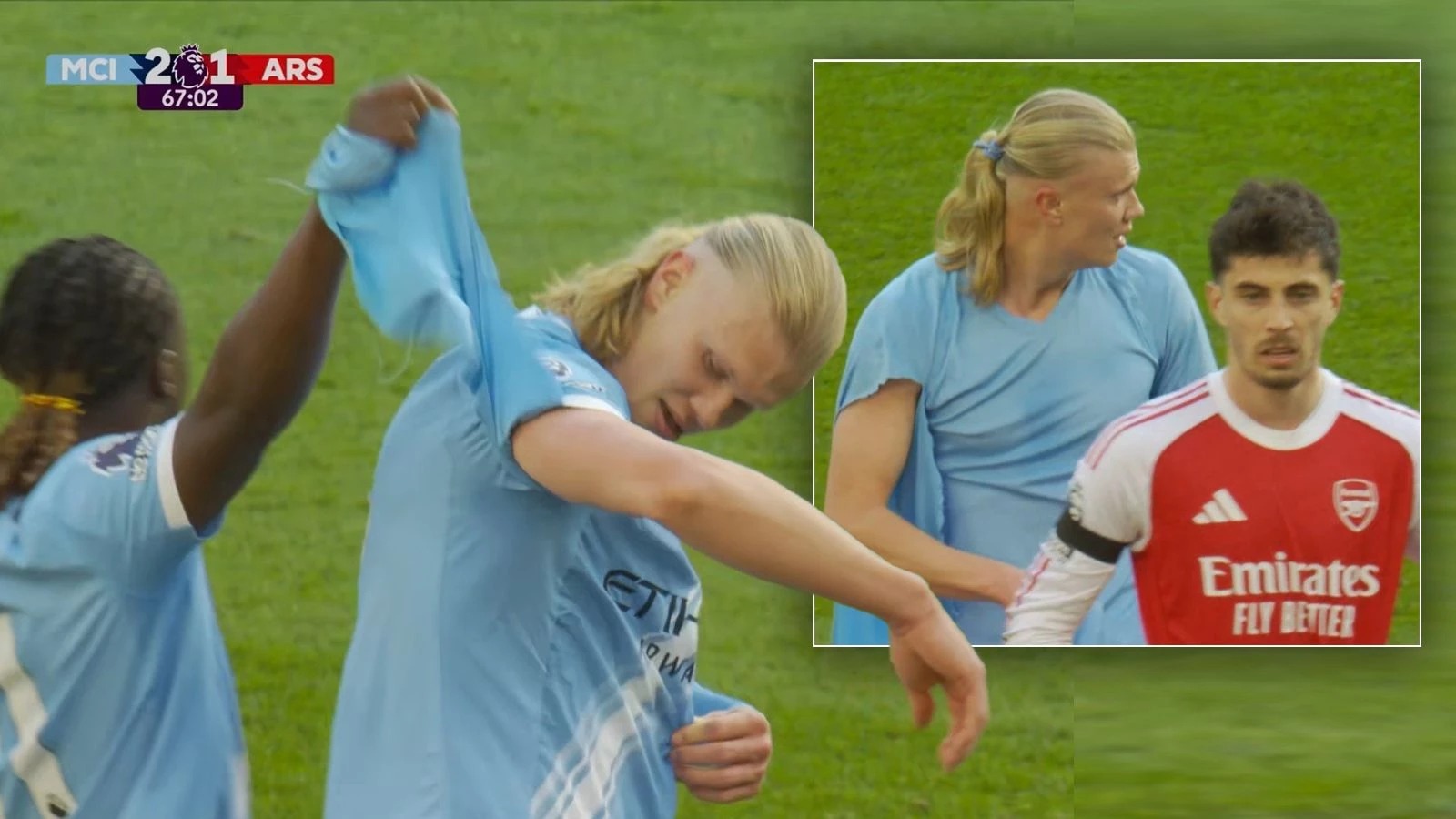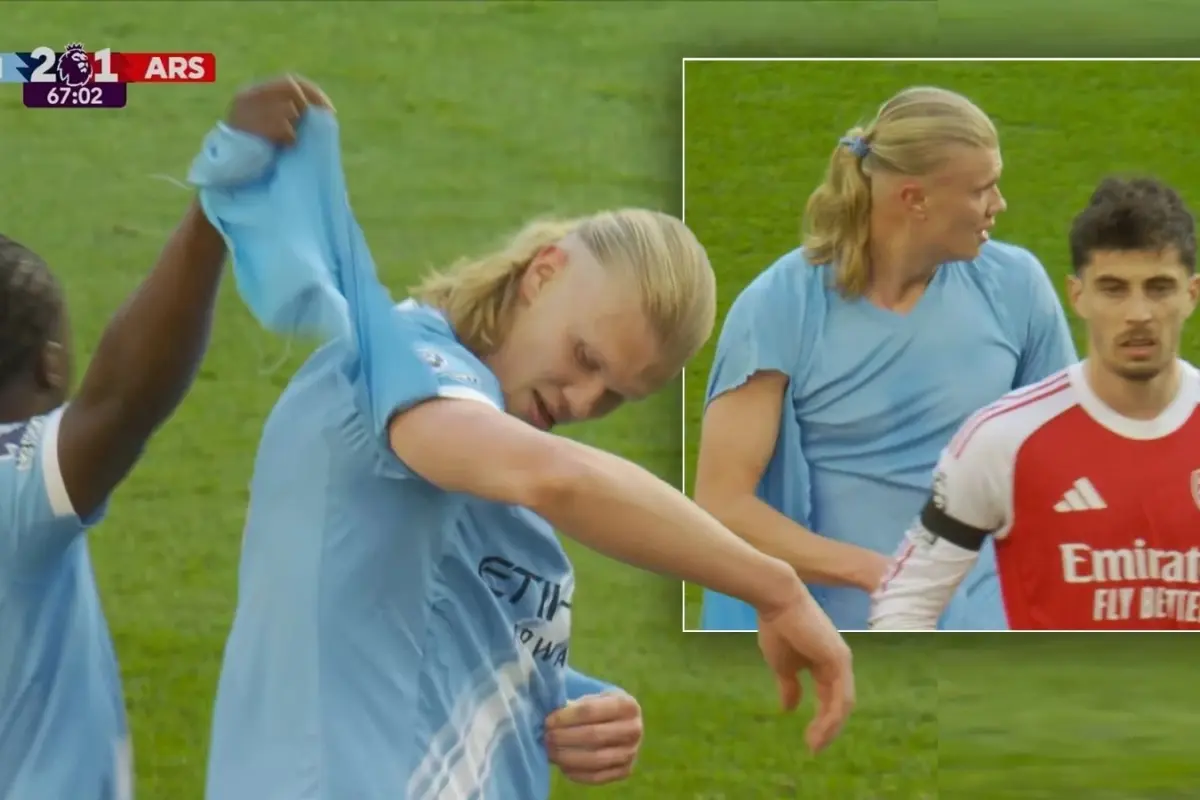 News24.az xəbər verir ki, qarşılaşmada diqqət çəkən epizodlardan biri Erling Haaland ilə “Arsenal”ın müdafiəçisi Qabriel Maqalyaes arasında yaşanıb. Mübarizə zamanı norveçli hücumçu formasının altından geyindiyi uzunqol köynəyin cırıldığını iddia edərək hakimə etiraz edib. Lakin epizodla bağlı qərar dəyişməyib.