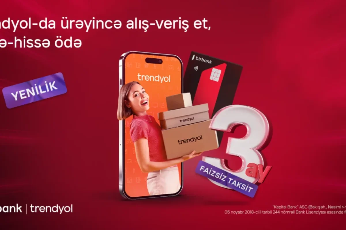 Ölkənin ilk rəqəmsal bankı Birbank taksit kartı sahibi olan olan müştərilərinə yeni imkanlar yaratmağa davam edir. "Trendyol" ilə əməkdaşlıq çərçivəsində həyata keçirilən yeniliklə artıq Birbank taksit kartı istifadəçiləri "Trendyol" mobil tətbiqindən çıxmadan ödənişlərini taksitə bölə biləcəklər.