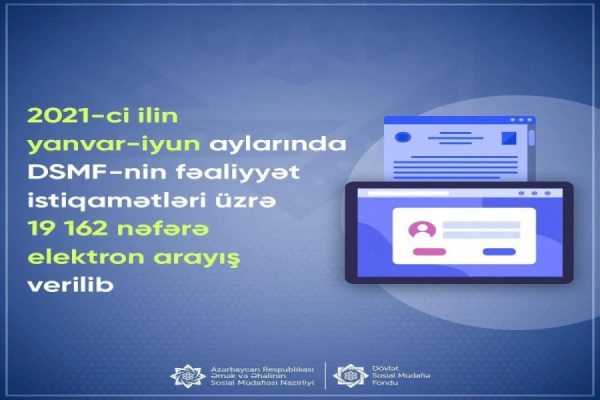 2021-ci ilin yanvar-iyun aylarında DSMF-nin fəaliyyət istiqamətləri üzrə elektron arayış alanların sayı 19 162 nəfər olub.