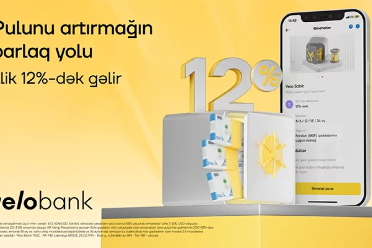 Əmanətini “Yelo Bank”a etibar et, - illik 12%-dək gəlir qazan