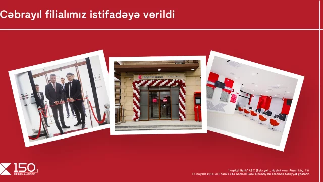 Ölkədə ən böyük filial şəbəkəsinə malik olan "Kapital Bank"ın filiallarının sayı Cəbrayıl filialının açılışının ardından 119-a çatdı. Tezliklə bankın Şuşa filialının da açılışı planlaşdırılır.