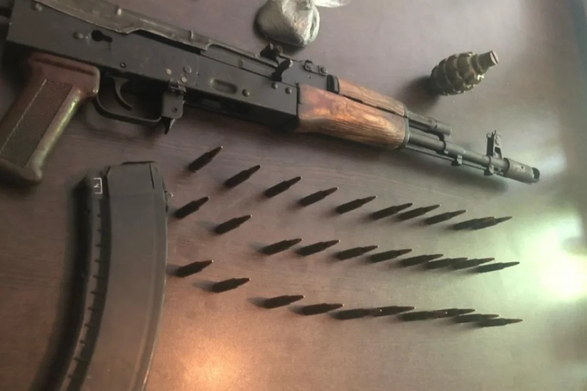 Onun yaşadığı evə baxış keçirilən zaman 1 ədəd “Kalaşnikov” avtomatı, içərisinədə 30 ədəd 5.45 kalibrli patronlar olan avtomat sandığı, 1 ədəd əl qumbarası və içərisində barıt olan 1 ədəd sellofan torba aşkar edilərək götürülüb.