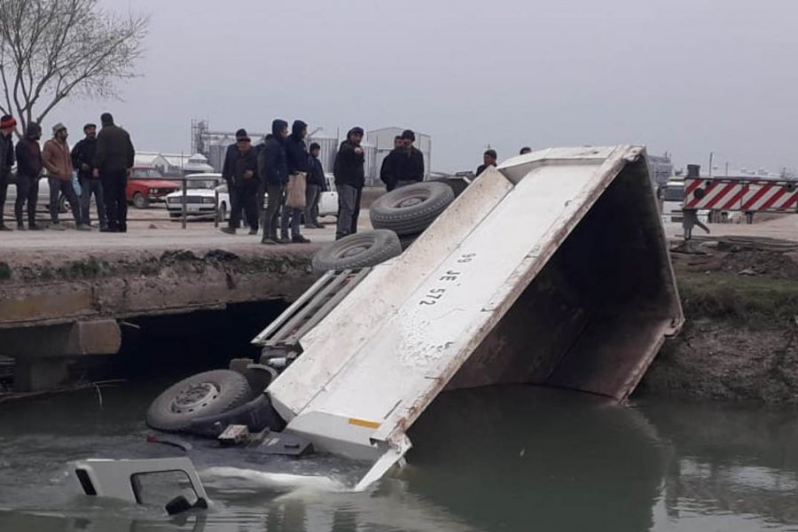 Belə ki, “Shacman” markalı yük maşını Şirvan kanalı üzərindəki körpüdən keçərkən idarəetmədən çıxaraq kanala aşıb.