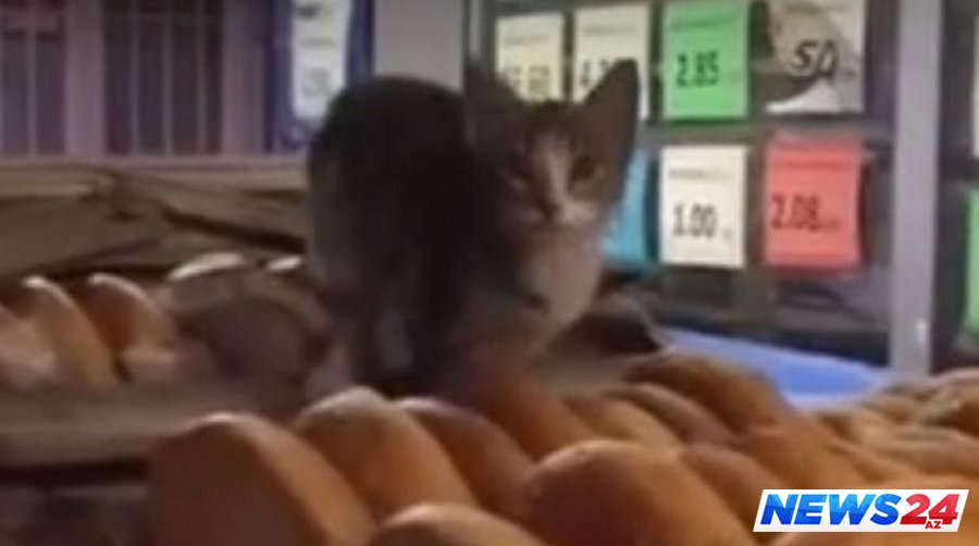 Bakıda mağazaların birində çörəyin üstünə çıxmış pişiyin görüntüləri sosial şəbəkələrdə müzakirələrə səbəb olub.
