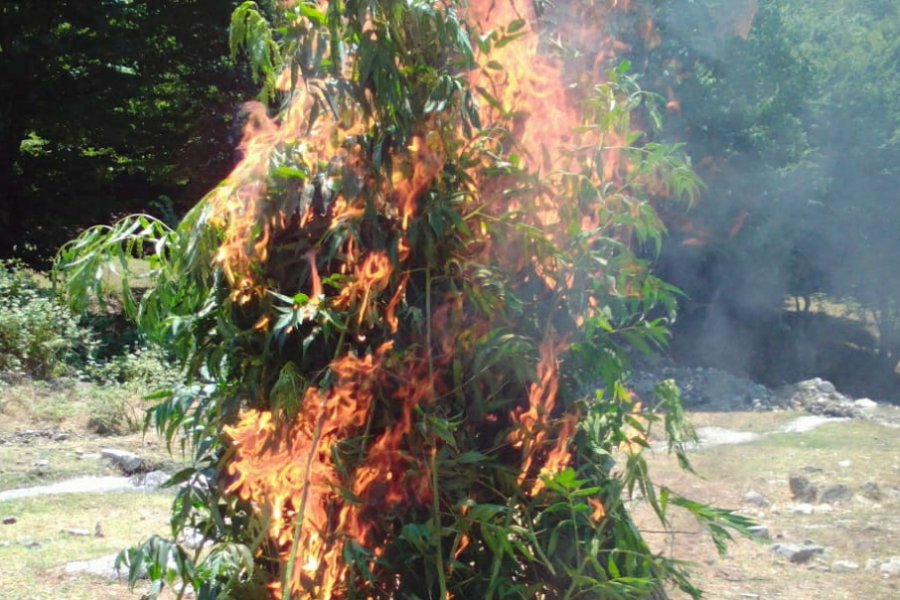 DİN-in Mətbuat Xidmətinin Şəki regional qrupundan News24.az-a verilən məlumata görə, Polis Şöbəsinin əməkdaşları tərəfindən keçirilən tədbirlərlə rayonun Cülyan kəndi ərazisində yabanı halda bitən, ümumi çəkisi 600 kiloqramdan artıq olan 522 ədəd çətənə kolu kökündən çıxarılıb və yandırılaraq məhv edilib.