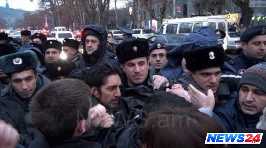 Yerevanda etirazçılarla polis arasında toqquşma - VİDEO