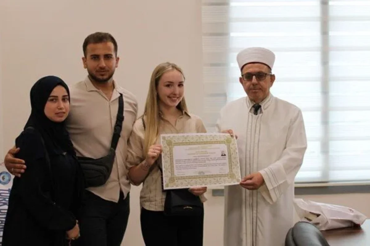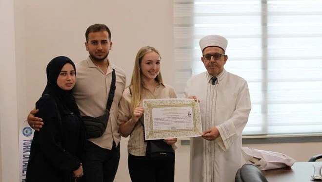 News24.az xəbər verir ki, Aydın İl Müftiliyinə müraciət edən və müsəlman olmaq istədiyini bildirən Hollandiya vətəndaşı Chantal Rina Stefani Ter üçün din dəyişdirmə mərasimi keçirilib.