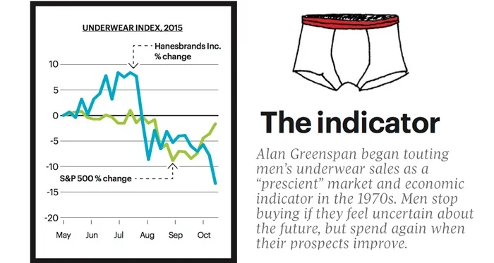 Belə ki, "kişilərin alt paltarı" indeksi olaraq iqtisadi ədəbiyyatına daxil edilən nəzəriyyəyə görə, kişilərin özlərinə yeni alt paltarı almağa başlaması iqtisadi vəziyyətin düzəldiyini göstıərir.