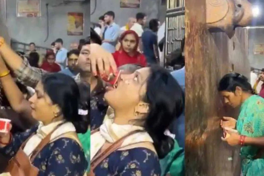 Görüntülərdə bəzi hindlilərin suyun damladığı yerdə dua etdikləri də görülür.