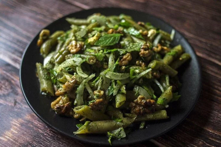 Yay üçün ideal bir salat axtarırsınızsa, bu nanəli-şüyüdlü gürcü yaşıl lobya salatı sizin üçün əsl tapıntı olacaq. Gənc yaşıl lobyanın yumşaq teksturası, təravətli nanə və ədviyyəli şüyüd ilə birləşərək yay istisində sərin bir nəfəs kimi təsir edir.