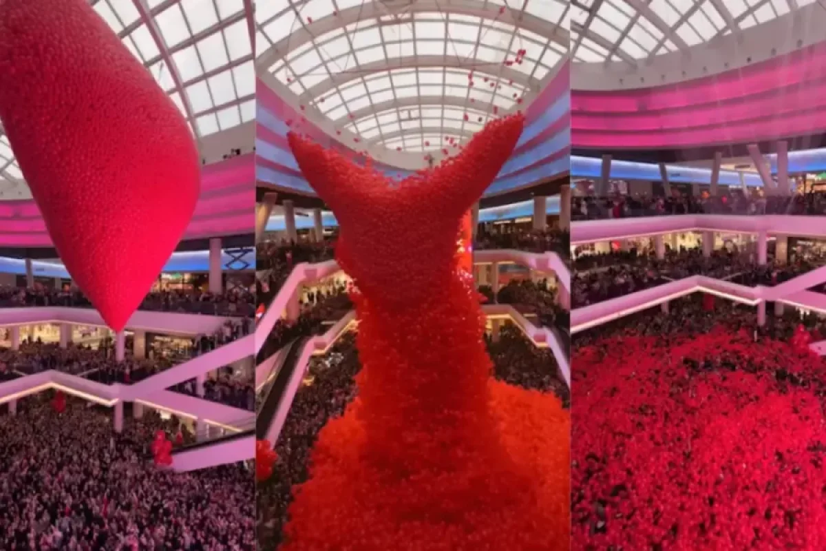 News24.az xəbər verir ki, bu günün şərəfinə mərkəzin tavanında ürək formasında quraşdırılan qurğudan 99 min şar atılıb.