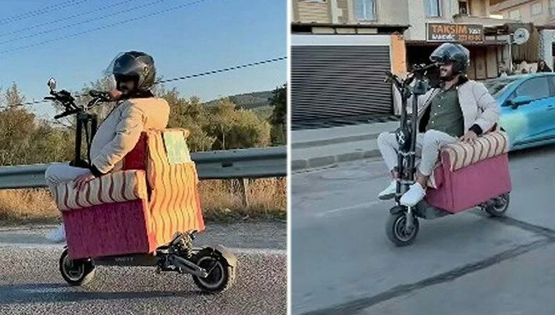 News24.az xəbər verir ki, alternativ nəqliyyat vasitəsi axtaran Bostan sürücülük vəsiqəsi tələb olunmayan elektrikli skuter alıb. Bostan ayaq üstə səyahət etməkdən yorulub və skuterə ev oturacağını taxıb.