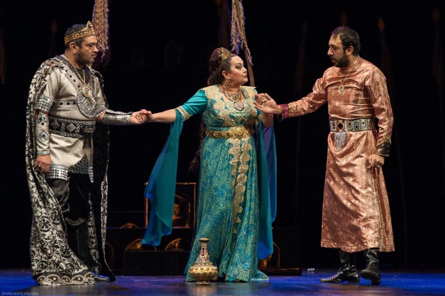 Səhnə əsərində xalq artisti Bəsti Cəfərova (Qətibə İnanc) və Sabir Məmmədov (Nizami), aktyorlar Rüstəm Rüstəmov (Qızıl Arslan), İlyas Əhmədov (Fəxrəddin), əməkdar artist Kazım Abdullayev (Toğrul), aktrisalar Şəhla İsmayılova (Səba), Fidan Cəfərova (Gənc Qətibə), aktyor Elnur Qədirov (Qutluğ), əməkdar artistlər Mirzə Ağabəyli və Elxan Quliyev (Vəzir), aktyor Cümşüd Zeynalov (Zindan keşikçisi), əməkdar artistlər Məzahir Cəlilov (Qazı), Rövşən Kərimduxt (Hüsaməddin) və Əlvida Cəfərov (Saray əyanı) iştirak edirlər.