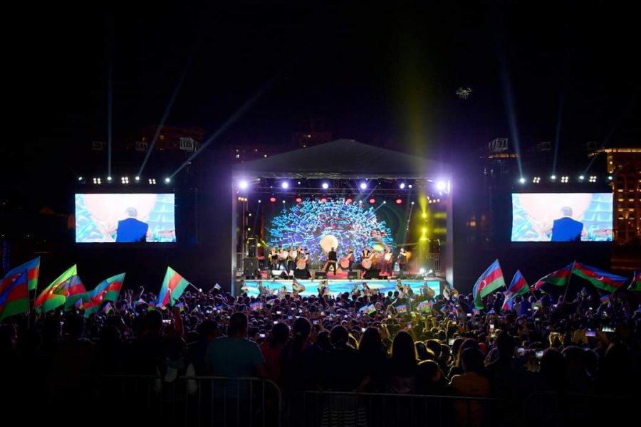 Heydər Əliyev Mərkəzinin parkında təşkil olunan bayram konsertində Azərbaycan bayrağı dalğalandıran minlərlə insan iştirak edib.