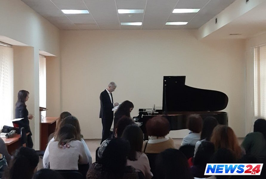 News24.az xəbər verir ki, professor-müəllim və tələbə heyətinin iştirakı ilə keçirilən ustad dərsində xarici bəstəkarların əsərlərinə müraciət olunub.