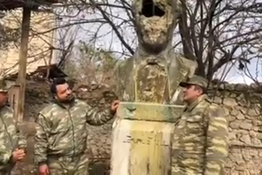 News24.az xəbər verir ki, S.Cəfərov Bülbülün mənfur düşmən tərəfindən dağıdılmış büstünün yanında "Sevgili canan" əsərini ifa edib.