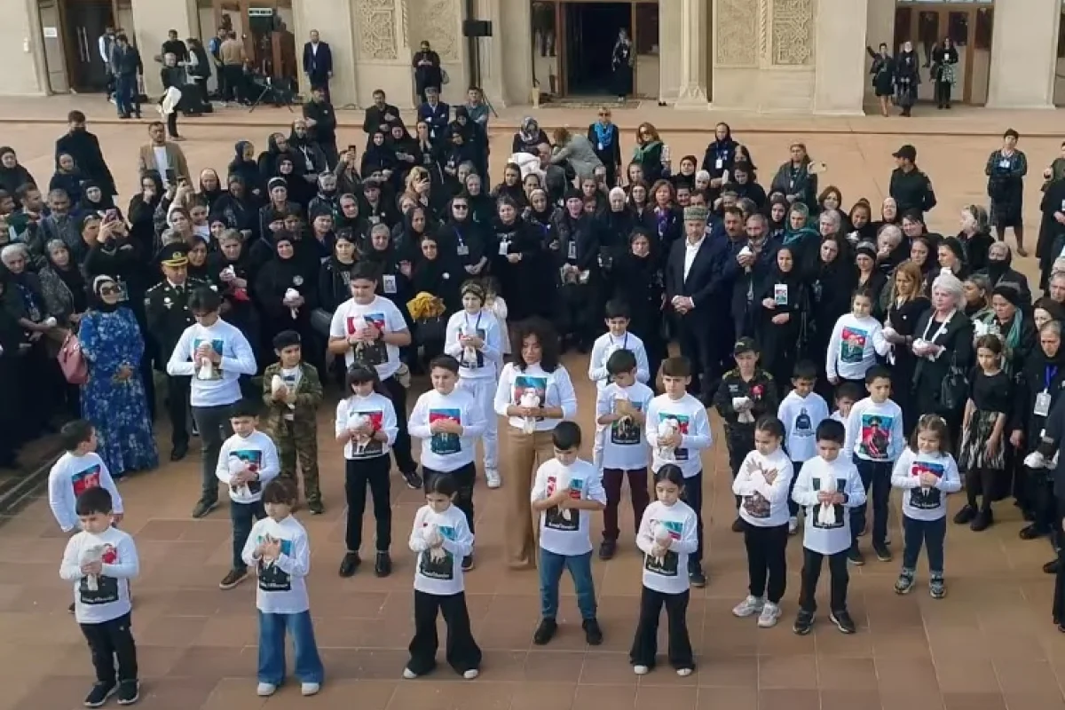 Tünzalə Ağayeva və şəhid övladları birlikdə "Qovuş ona" adlı mahnının səsləndiriblər.