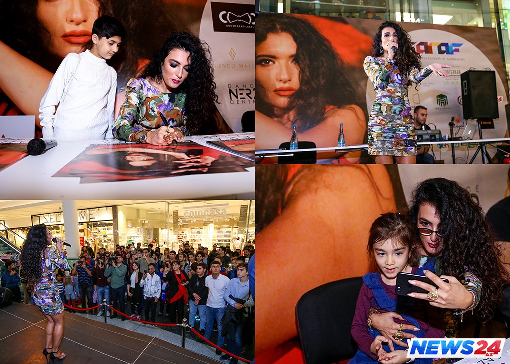News24.az xəbər verir ki, ötən gün "Gənclik Mall" AVM-də baş tutan tədbirdə ifaçının pərəstişkarları iştirak edib. İmza günü ifaçının "Azərbaycan" mahnısını ifa etməsi ilə başlayıb. Mahnı məkanda iştirak edən yerli sakinlərlə yanaşı xarici turistlərin də marağına səbəb olub.