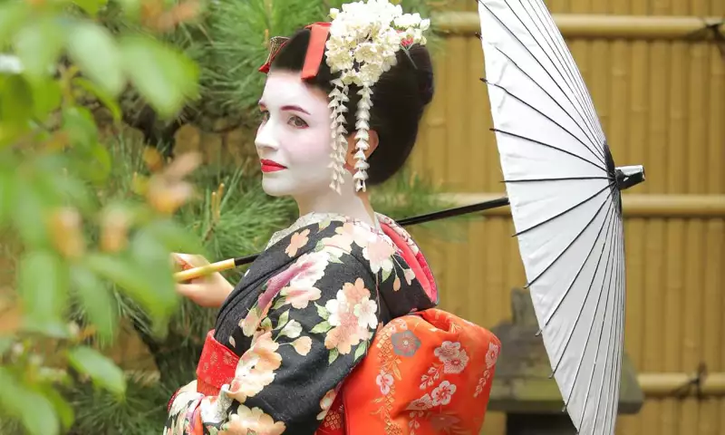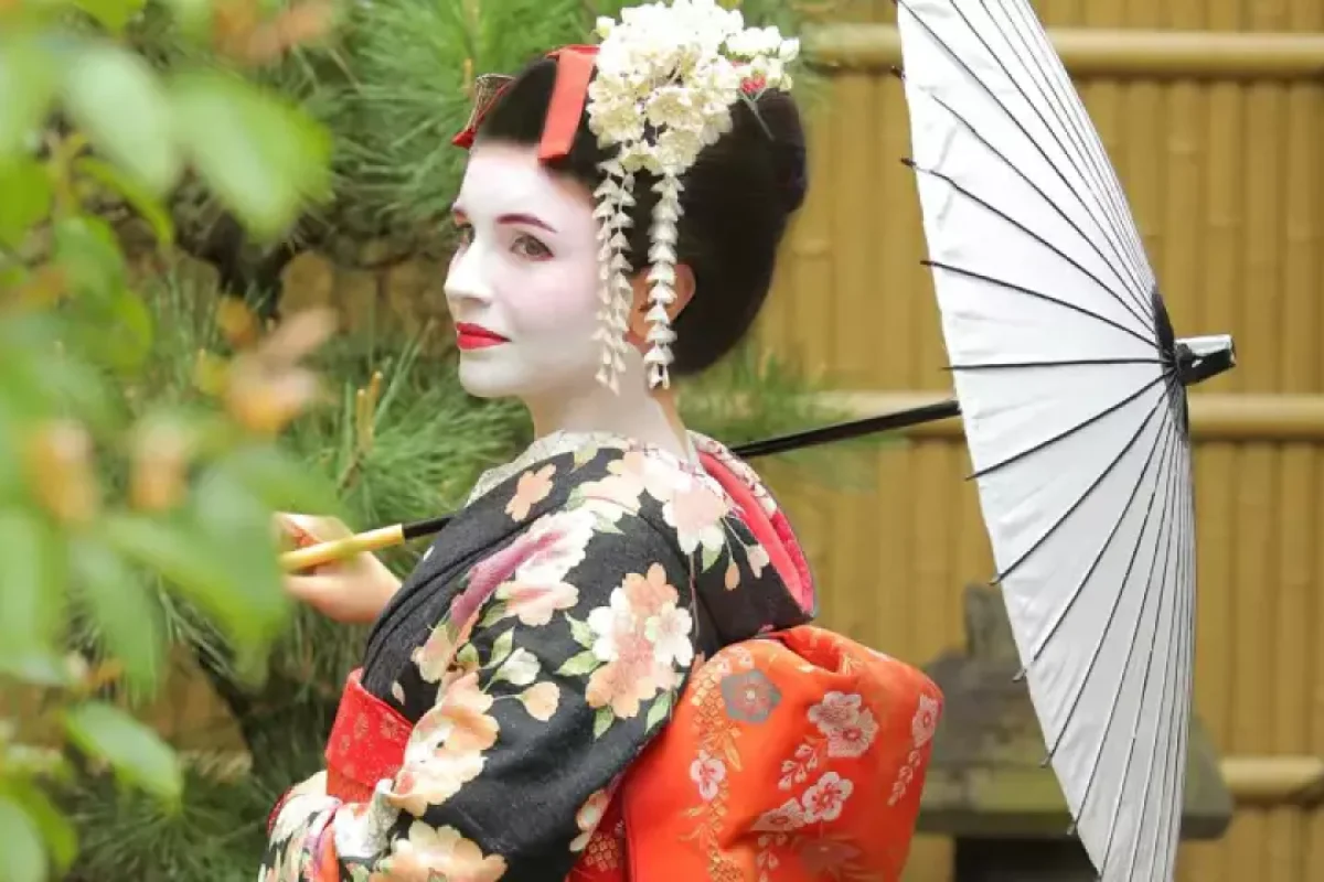 Elmira fotosessiya üçün Geyşa obrazına bürünüb.