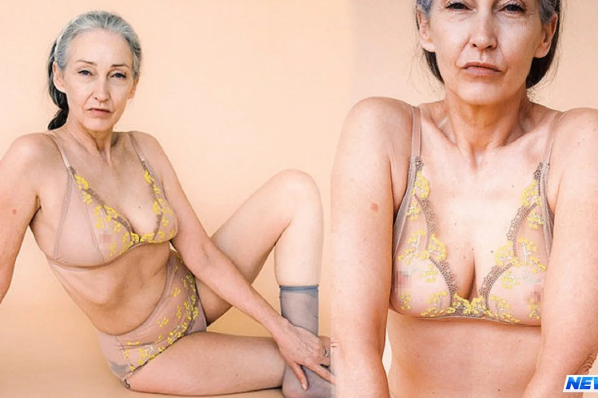 60 yaşlı model alt paltarının nümayişi üçün kameralar qarşısına çıxıb.