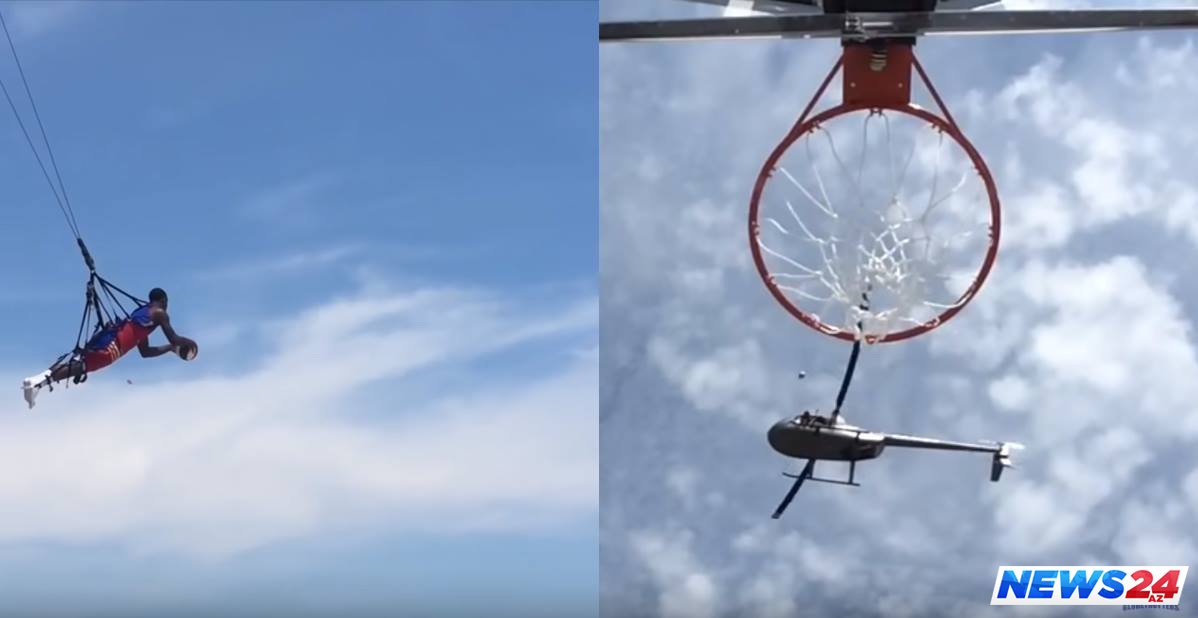 Amerikalı basketbolçu topu təyyarədən səbətə atdı - VİDEO
