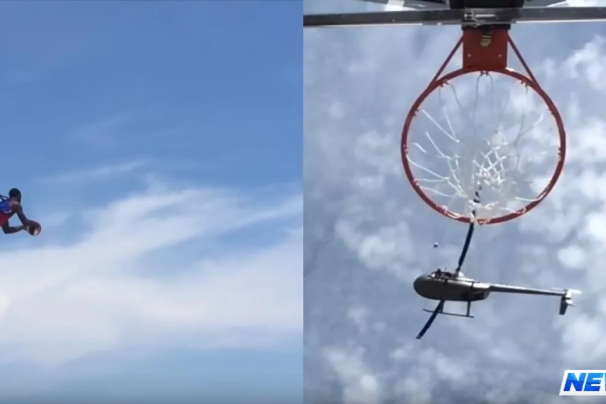 ABŞ-ın "Harlem Qlobtrotters" basketbol komandasının üzvü Bull Bullard topu səbətə birbaşa təyyarədən atıb.