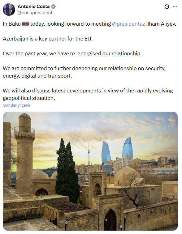 Avropa İttifaqı Şurasının Prezidenti Antonio Koşta Azərbaycana səfərə gəlib.
